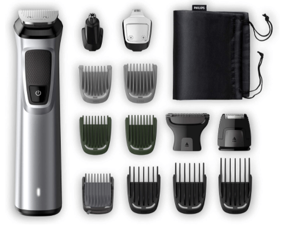 Viene venduto con diversi pettini regolabili e con tanti altri accessori, tra cui un rifinitore in metallo, un rifinitore di precisione sempre in metallo, un rasoio di precisione, un rifinitore per naso e orecchie, un regolacapelli con testina ampia, un bodyshaver, e un accessorio corpo per la protezione della pelle.